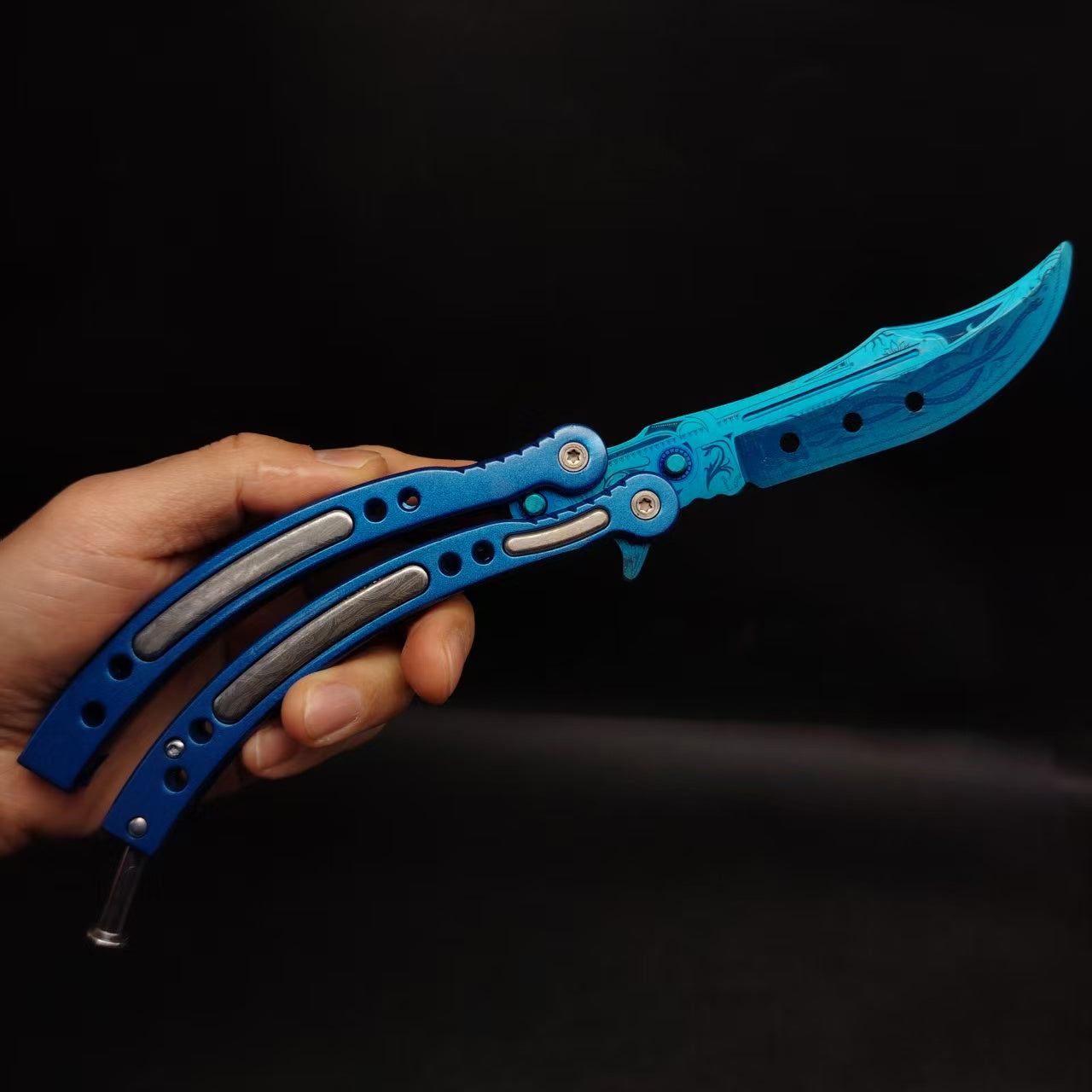 This is a special version of the in-game knife—Cartel Blue Balisong!