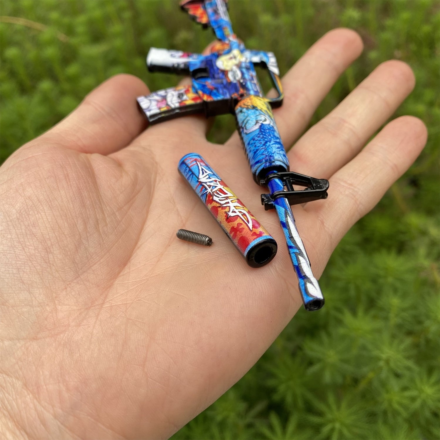 The image is nicely 3D-printed on the tiny gun.